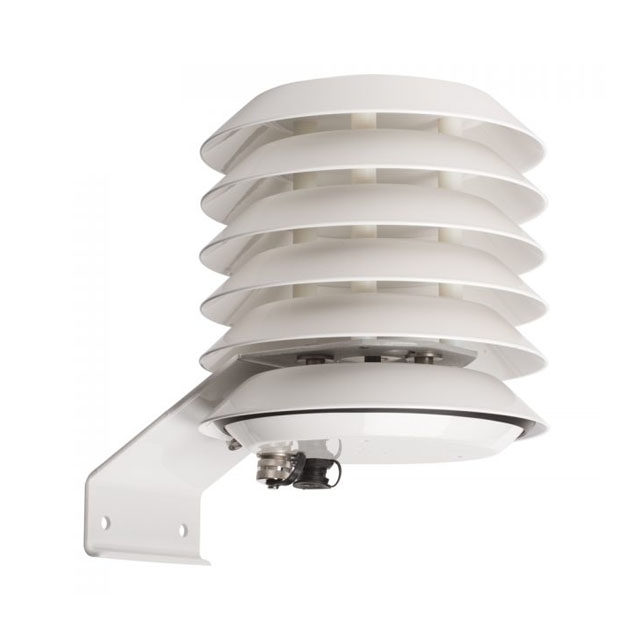 所有組件都安裝在多板自然吸氣式防輻射罩中,以減少太陽輻射加熱誤差。防護(hù)罩由一系列白色鋁同心板組成,允許氣流穿過防護(hù)罩,同時阻擋直射的太陽光線。