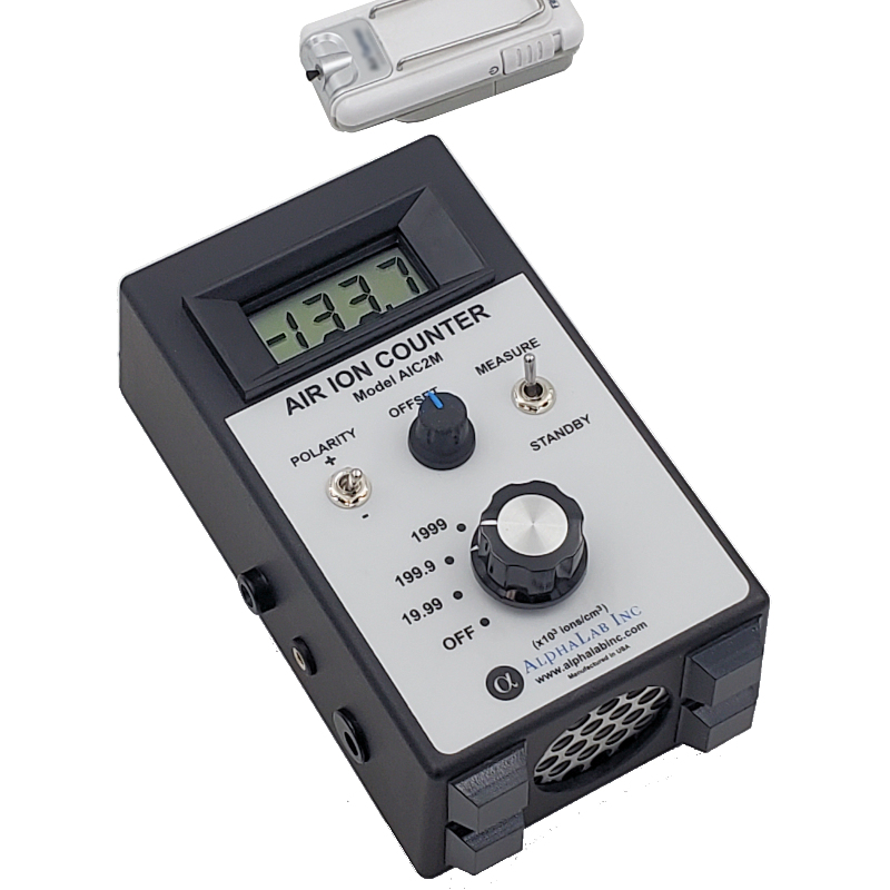 空氣離子計(jì)數(shù)器是一種手持式儀表,用于測(cè)量離子密度——空氣中每立方厘米(離子/立方厘米)的離子數(shù)量。它分別測(cè)量正離子和負(fù)離子(+和-離子通常同時(shí)存在)。該儀器是一個(gè)真正的離子密度計(jì),基于Gerdien管(Gerdien冷凝器)設(shè)計(jì),它包含一個(gè)風(fēng)扇,以校準(zhǔn)的速率將空氣通過(guò)儀表。標(biāo)準(zhǔn)模型測(cè)量高達(dá)200萬(wàn)個(gè)離子/立方厘米(相比之下,室外空氣通常有100到1000個(gè)離子/立方厘米,包括+和-)。200萬(wàn)的范圍足以滿足幾乎所有情況,除了測(cè)量非常接近電電離器或強(qiáng)放射源。對(duì)于這些應(yīng)用,也可提供范圍為2000萬(wàn)和2億離子/cc的型號(hào)。包括AC適配器。