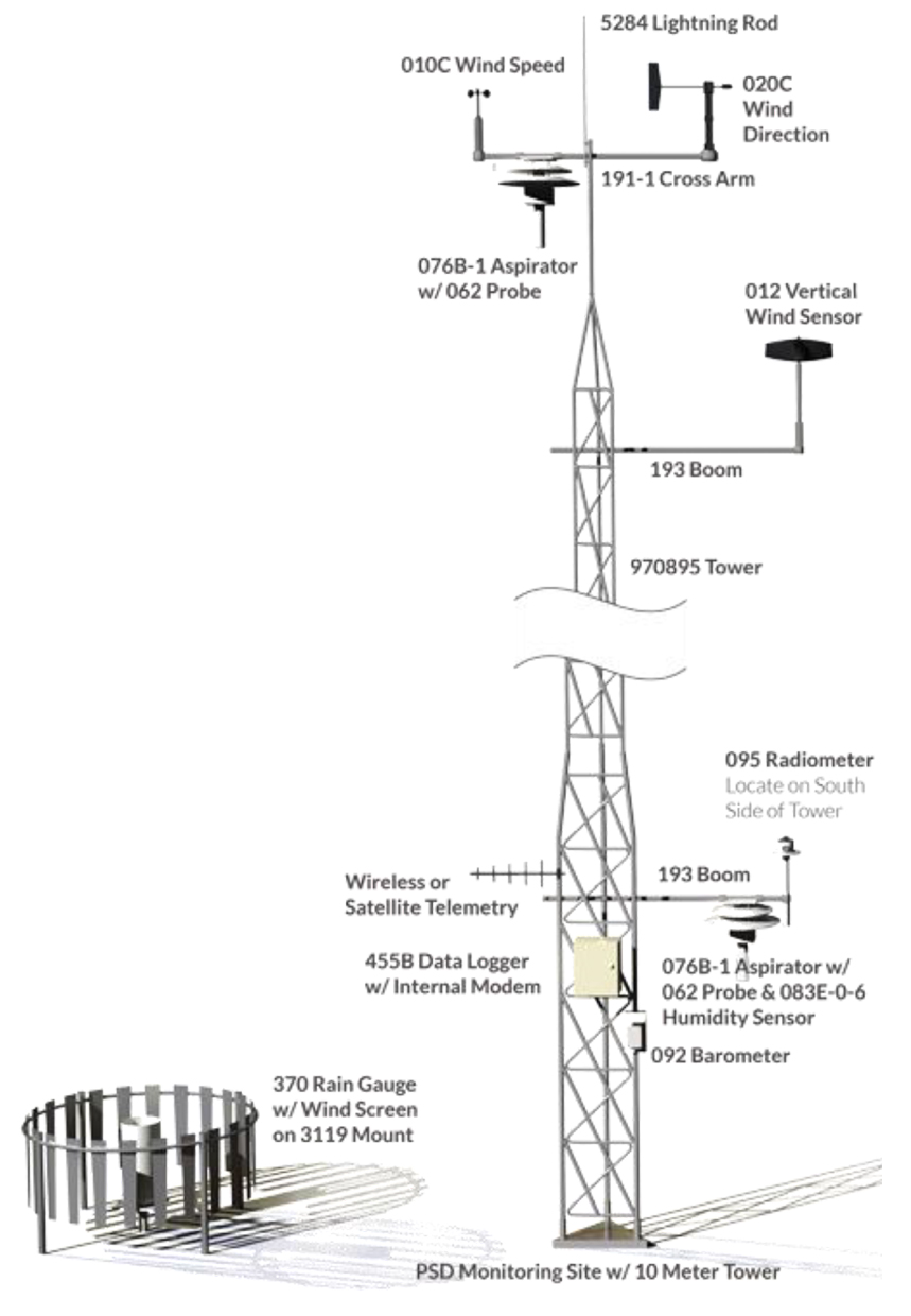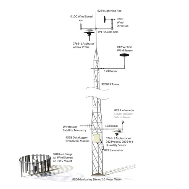 空氣質(zhì)量系統(tǒng)包括性能兼容的傳感器、電纜、安裝硬件、10 米傾斜塔和數(shù)據(jù)采集系統(tǒng)。氣象站可以由交流或直流電源或可選的太陽能系統(tǒng)供電。