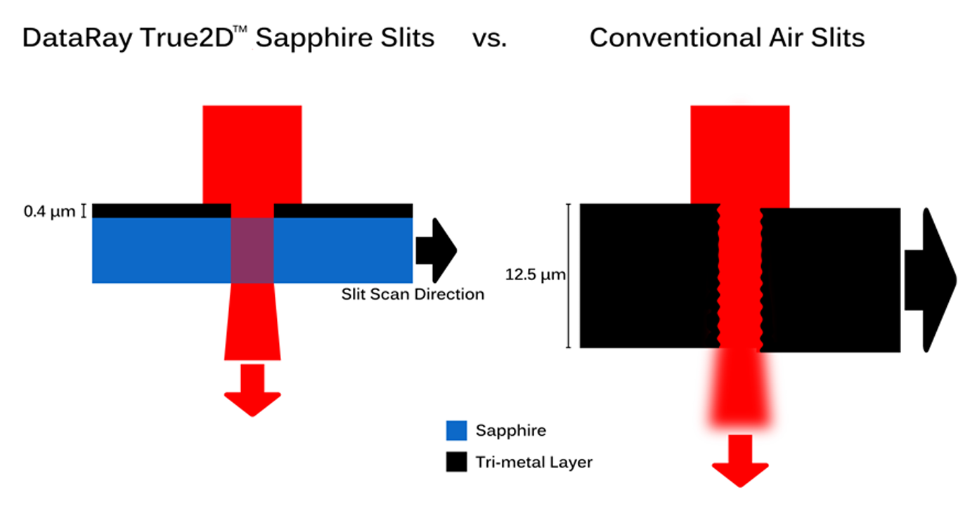 DataRay 的 Beam'R2 非常適合許多激光束輪廓分析應(yīng)用。Beam'R2 具有標(biāo)準(zhǔn)的 2.5 μm 狹縫和更大的刀刃狹縫,能夠測量直徑小至 2 μm 的光束。Beam'R2 提供硅和 InGaAs 或擴展 InGaAs 選項,可以對 190 nm 至 2500 nm 的光束進(jìn)行剖析。掃描狹縫儀器的分辨率比基于相機的系統(tǒng)高得多。