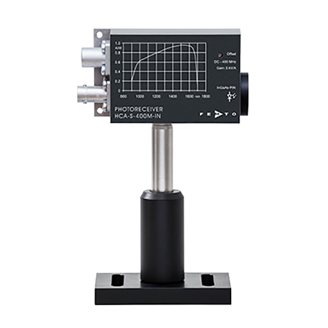 HCA-S-400M 光接收器系列將快速光電二極管與久經(jīng)考驗(yàn)的FEMTO HCA 電流放大器技術(shù)相結(jié)合。HCA-S-400M 可配備快速硅或 InGaAs 光電二極管,分別覆蓋 320 至 1000 nm 和 900 至 1700 nm 的光譜范圍。放大器跨阻抗為 5 x 103 V/A,導(dǎo)致InGaAs 模型在 1550 nm 時(shí)的最大轉(zhuǎn)換增益為 4.8 x 103 V/W,而 InGaAs 模型為 2.7 x 103帶有硅光電二極管的模型在 800 nm 時(shí)的 V/W。復(fù)雜的直流耦合多級(jí)放大器設(shè)計(jì)允許測(cè)量從直流到 400 MHz 的帶寬,對(duì)應(yīng)于 1 ns 的最小上升時(shí)間。由于采用低噪聲設(shè)計(jì),無(wú)需進(jìn)一步平均即可檢測(cè)到光功率在微瓦范圍內(nèi)的信號(hào)。提供具有自由空間或光纖輸入的不同型號(hào)。