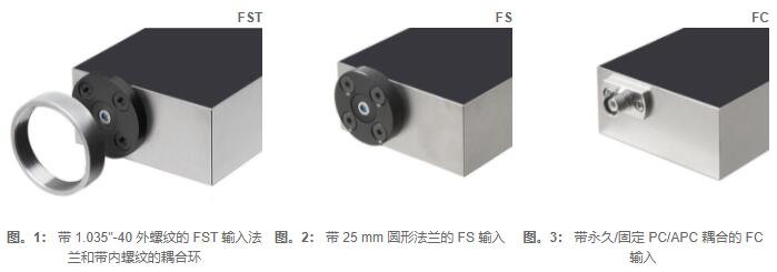 兼容光學(xué)平臺(tái)(自由空間)和光纖自由空間輸入設(shè)計(jì)為帶螺紋耦合環(huán)的 1.035"-40 螺紋法蘭 (FST) 或無(wú)螺紋的 25 mm 圓形法蘭 (FS)。這兩種類型都與來(lái)自不同制造商的光學(xué)配件廣泛兼容,例如透鏡、管、籠式系統(tǒng)、光學(xué)適配器等。