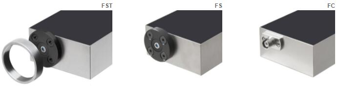 圖1:帶 1.035"-40 外螺紋的 FST 輸入法蘭和帶內(nèi)螺紋的耦合環(huán);圖2:帶 25 mm 圓形法蘭的 FS 輸入;圖3:帶持久/固定 PC/APC 耦合的 FC 輸入