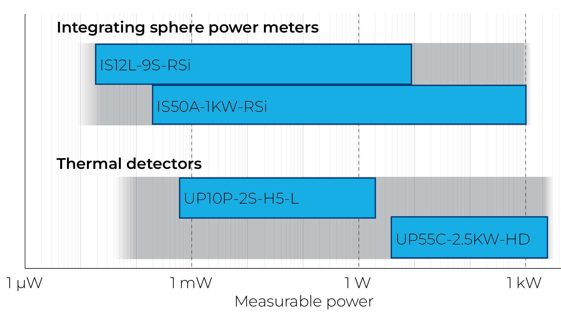由于采用了基于光電二極管的傳感器,IS 系列功率計的測量時間不到 200 毫秒,比熱檢測器快數(shù)十倍。