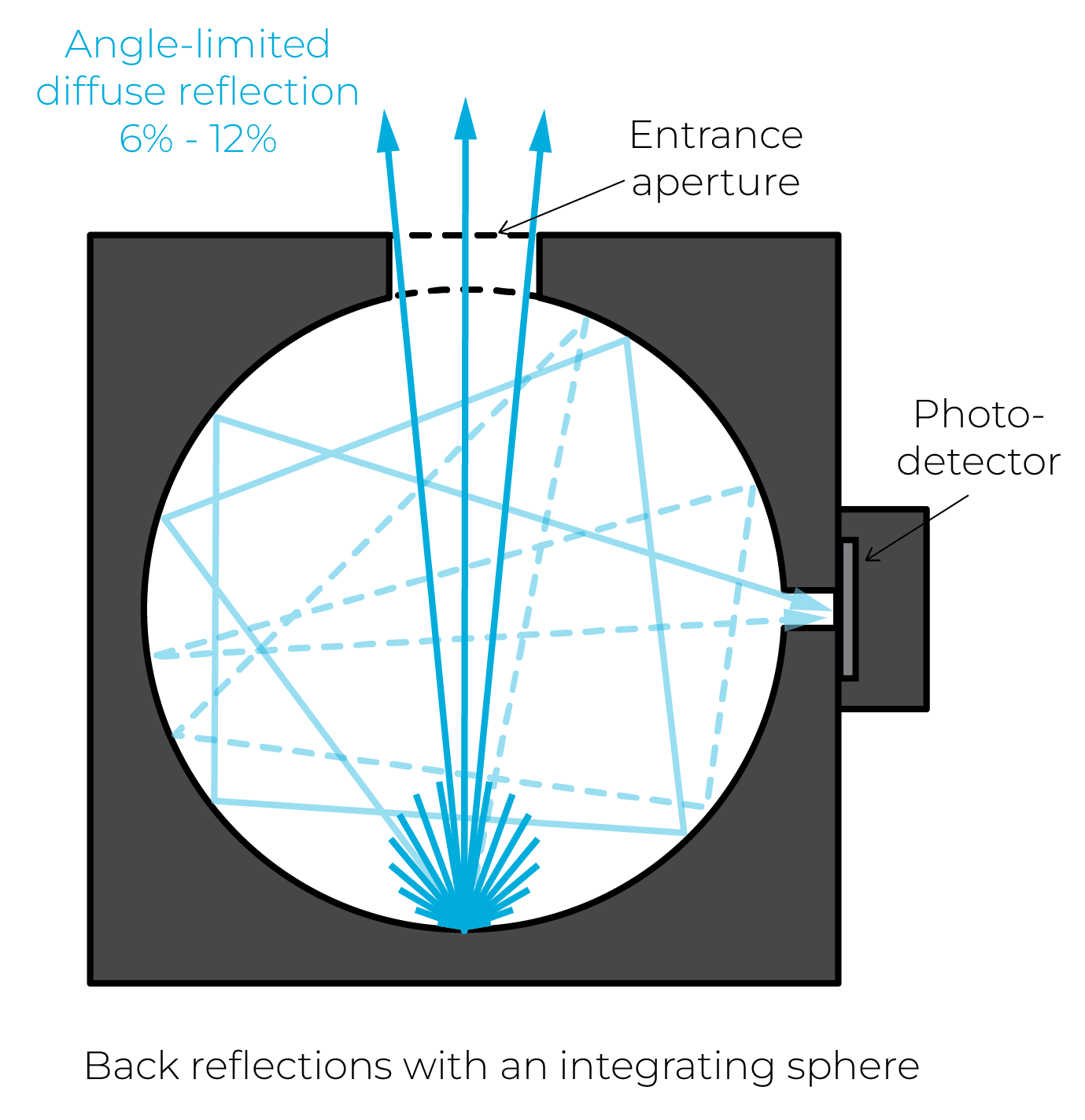 熱檢測器和水熱量計以朗伯方式漫反射 10%-15%的入射光,而 IS 系列的積分球通過其光圈只定向反射 6%-12%的入射光。這有助于提高測量環(huán)境中的安全性,更容易處理背面反射。