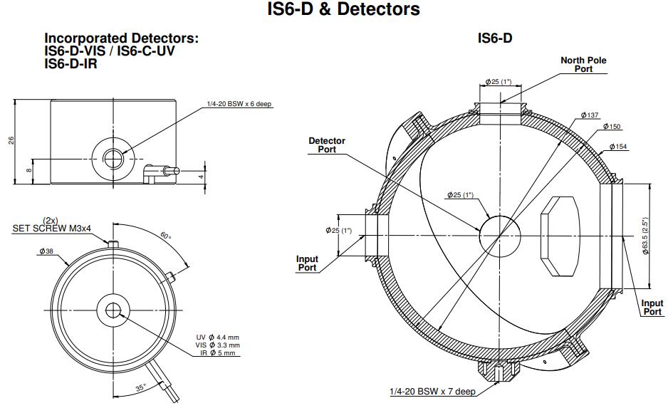 IS6-D-VIS 是一個(gè) 6 英寸積分球(內(nèi)部 5.3 英寸),帶有用于發(fā)散 (D) 光束的硅檢測(cè)器。IS6-D-VIS 帶有 VIS 檢測(cè)器,校準(zhǔn)范圍為 400 至 1100nm,可測(cè)量高達(dá) 30W 的功率。