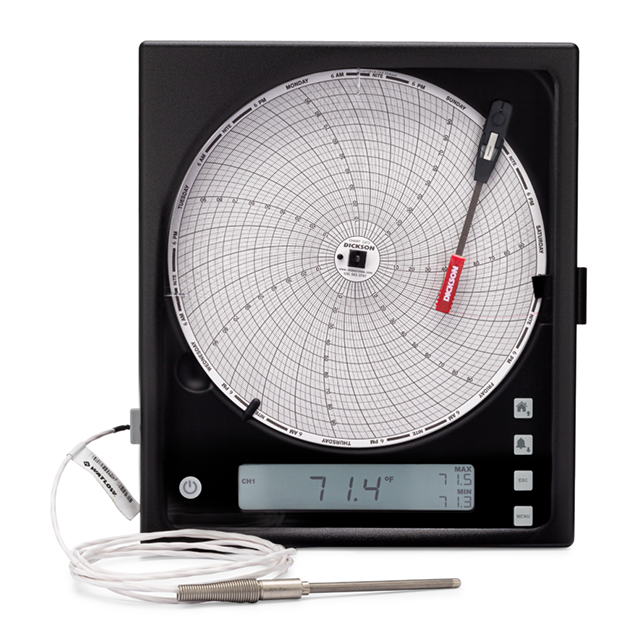 美國(guó)DICKSON KT8-40 8英寸(203 毫米)圖表記錄儀提供所有圖表記錄儀中較大的分辨率?,F(xiàn)在具有可更換傳感器,校準(zhǔn)您的圖表記錄儀比以往任何時(shí)候都更容易。所有圖表記錄儀均配有 8 英寸大圖表和用戶可選擇的記錄時(shí)間范圍(1 天、1 周)和范圍。