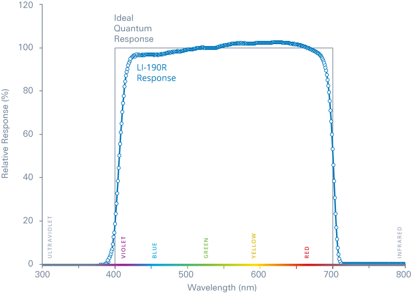 LI-190R響應(yīng)和以能量為單位的理想量子響應(yīng)