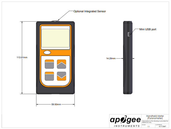MP-200具有采樣和日志模式,并將以 MJ m -2 d -1為單位記錄每日綜合總量。采樣模式將記錄多達(dá) 99 個(gè)手動(dòng)測(cè)量值。日志模式將打開(kāi)/關(guān)閉儀表,每 30 秒進(jìn)行一次測(cè)量。每 30 分鐘,儀表將對(duì) 60 個(gè) 30 秒的測(cè)量值進(jìn)行平均,并將平均值記錄到內(nèi)存中。儀表可存儲(chǔ) 多達(dá)99 個(gè)平均值,一旦存滿,它將開(kāi)始用新的測(cè)量值覆蓋最舊的測(cè)量值。將從 48 次平均測(cè)量(以 24 小時(shí)為周期)記錄綜合的每日總數(shù)??梢栽?LCD 顯示屏上或通過(guò)將數(shù)據(jù)下載到計(jì)算機(jī)來(lái)查看樣本和日志測(cè)量值,但是,只能通過(guò)將數(shù)據(jù)下載到計(jì)算機(jī)來(lái)查看綜合的每日總量。將數(shù)據(jù)下載到計(jì)算機(jī) 需要AC-100 通信電纜(標(biāo)準(zhǔn) USB 電纜不起作用)和ApogeeAMS 軟件。