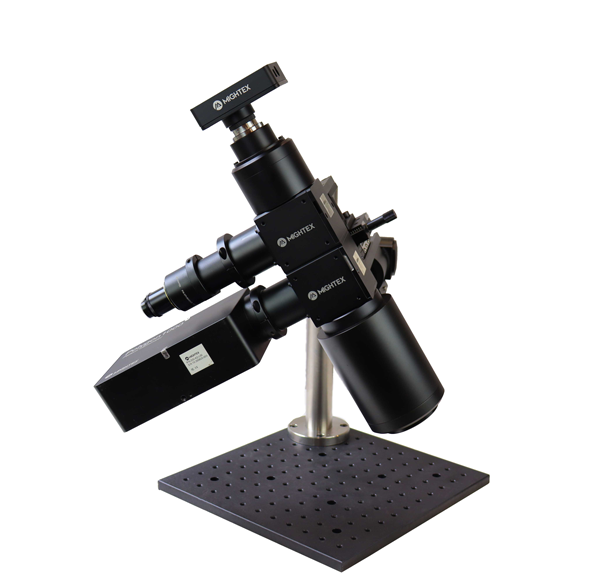 載物臺(tái)上。XYZ載物臺(tái)控制系統(tǒng)的橫向運(yùn)動(dòng)和焦點(diǎn)。支撐結(jié)構(gòu)允許 2 個(gè)傾斜軸,允許光學(xué)組件左右旋轉(zhuǎn),向前和向后旋轉(zhuǎn)。