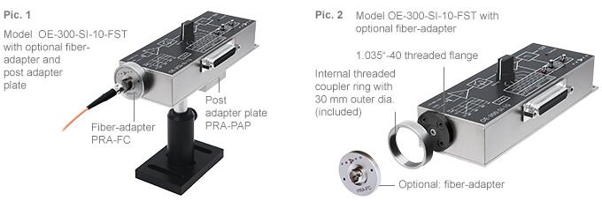 對(duì)于檢測(cè)器面積小于直徑0.4 mm 的型號(hào),建議僅在有限范圍內(nèi)使用光纖適配器,因?yàn)榭赡軙?huì)發(fā)生耦合損耗和不穩(wěn)定。如果重點(diǎn)是高精度光纖測(cè)量,使用固定光纖輸入的 FC 模型通常會(huì)得到很好的結(jié)果。