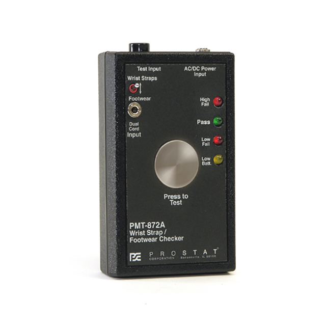 PMT-872 是一款獨(dú)特、高度便攜、電池供電的多功能 PASS/FAIL 性能驗(yàn)證器。它確認(rèn)了腕帶、腳跟帶和 ESD 控制鞋類的工作阻力范圍。 PMT-872 具有一個(gè)大的測(cè)試按鈕、帶有綠色 PASS 燈的可聽見的 PASS 嗶嗶聲、紅色低電平和高電平故障燈以及黃色電池電量低指示燈。為可選的 AC-DC 電源適配器和測(cè)試雙導(dǎo)制腕帶提供了額外的連接。前面板撥動(dòng)開關(guān)允許在一個(gè)工位上測(cè)試腕帶和鞋類。鞋類測(cè)試板、卡扣連接器和引線可以單獨(dú)購買。