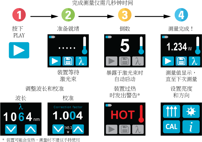 得益于低噪音和高損傷閾值,PRONTO-250-FLEX可以測(cè)量0.5 W至250 W的功率。