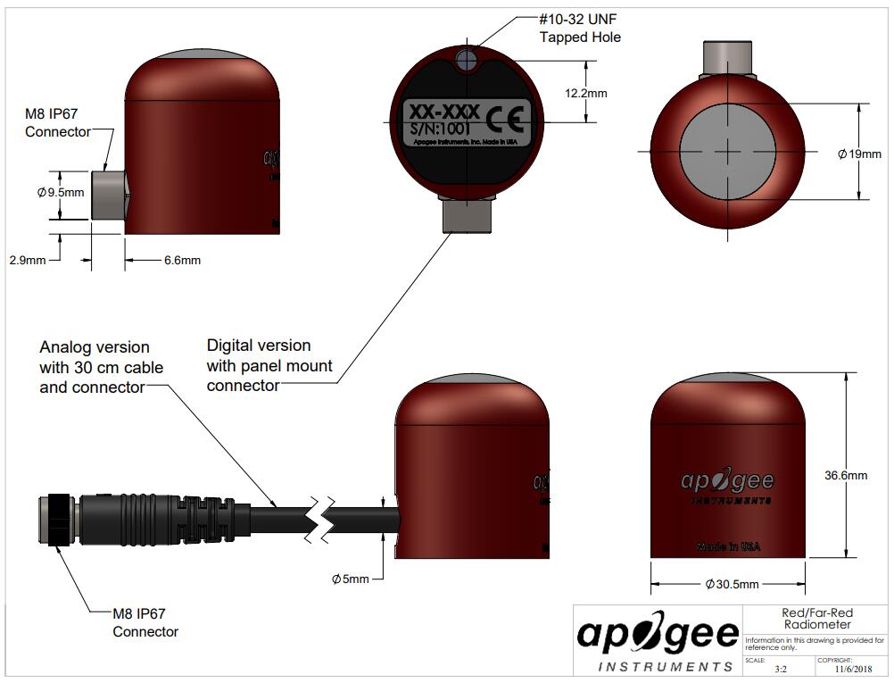 S2-432 紅色 - 遠紅外傳感器使用 Modbus RTU 協(xié)議通過 RS-232 和 RS-485 輸出數(shù)字信號。該傳感器采用堅固的鋁制外殼,可完全浸入水中,可承受惡劣條件,并采用預(yù)鍍錫尾纖引線的高質(zhì)量電纜端接,可輕松連接到數(shù)據(jù)記錄器和控制器。傳感器電纜包括一個 IP68 航海級不銹鋼電纜連接器,以簡化從持久安裝中拆卸和更換傳感器以進行維護和校準的過程。典型應(yīng)用包括測量生態(tài)應(yīng)用的紅光/遠紅光比 (RFR),包括光譜質(zhì)量對光敏色素的影響。RF 比率會影響植物高度、葉片展開率以及其他光生物學和植物形態(tài)發(fā)生反應(yīng)。
