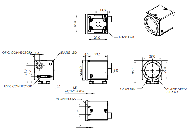 | 活動(dòng)區(qū)域 | 5.3 毫米 x 7.1 毫米 |