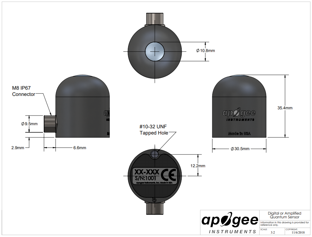 SQ-421X-SS是一種使用SDI-12通信協(xié)議的數(shù)字傳感器。該傳感器根據(jù)陽光進行校準,并具有自動應用浸沒效應校正因子進行水下測量的命令。該傳感器具有堅固耐用、自清潔的傳感器外殼設(shè)計,高質(zhì)量的電纜終端采用預鍍錫的辮子式引線,方便連接到數(shù)據(jù)記錄儀和控制器。典型的應用包括在室外環(huán)境、溫室和生長室中對植物冠層進行PPFD(光合光子通量密度)測量,以及在相同環(huán)境中反射或冠層下(傳輸)PPFD測量。量子傳感器也被用于測量水生環(huán)境中的PAR(光合有效輻射)/PPFD,包括生長珊瑚的鹽水水族館。