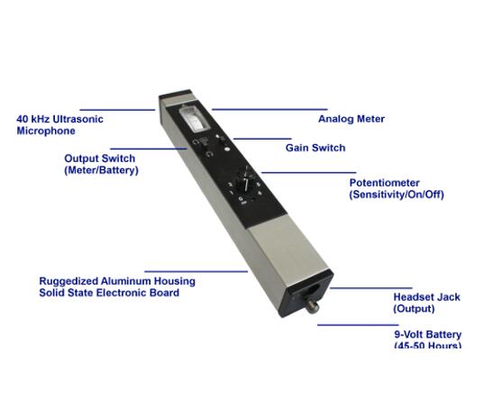 CTRL UL101 檢漏儀將超聲波 (40 kHz +/- 1 kHz) 轉(zhuǎn)換為可聽范圍并輸出到耳機(jī)。所有其他頻率都經(jīng)過過濾,因此在嘈雜的工廠環(huán)境中,即使是很小的空氣/氣體、真空或制冷劑泄漏也可以被檢測(cè)和精確定位。