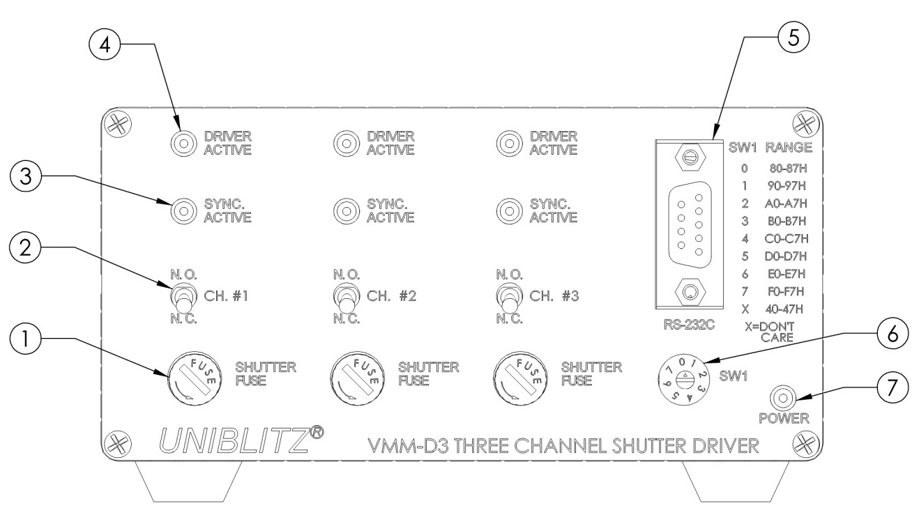 | 常開/常閉開關(guān) (2) | 在每個(gè)通道的 VMM-D3 接收到觸發(fā)信號(hào)之前,鑰匙開關(guān)的位置決定了快門狀態(tài)。 |