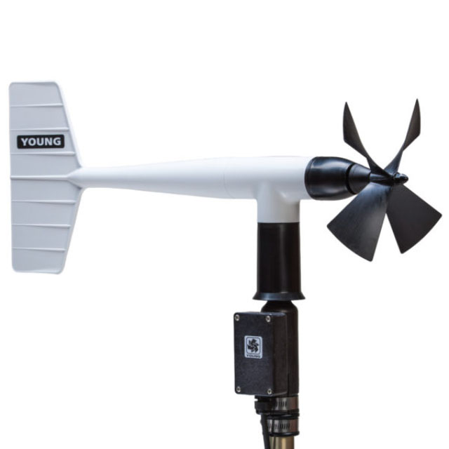 The YOUNG Model 05305 Wind Monitor-AQ measures horizontal wind speed and direction. Adapted from our Model 05103, this sensor is designed to meet many air quality specifications. A lightweight, carbon fiber thermoplastic (CFT) helicoid propeller, used to measure wind speed, generates an AC sine wave signal upon rotation. Wind direction is determined by a lightweight, balanced, vane attached to a precision potentiometer inside an internal housing. UV stabilized plastic with stainless steel and anodized aluminum parts are used in the construction of the sensor. The sensor mounts on a standard 1-inch IPS pipe. A mounting orientation ring is included that engages with the base of the sensor to retain orientation when the sensor is removed for maintenance. Terminations are made in a junction box at the base of the sensor by small clamp-style connectors (no special connectors are required).