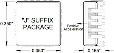 The model 1525 sensitive axis is perpendicular to the bottom of the package, with positive acceleration resulting from a positive force pushing on the bottom of the package. The seismic center is located on a centerline through the dual sense elements and halfway between them.