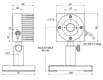 The 30(150)A-LP2-18 is a thermal power/energy laser measurement sensor for high power density and long pulse lasers. It has an 17.5mm aperture and can measure from 30mW to 30W continuously and to 150W intermittently. It can measure energy from 20mJ to 300J. Its high damage threshold LP2 absorber covers the spectral range from 0.25 to 2.2μm. The sensor comes with a standard 1.5 meter cable for connecting to a meter or PC interface.