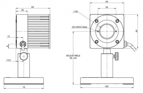 The 50(150)A-BB-26 is a general purpose thermal power/energy laser measurement sensor with a 26mm aperture. It can measure from 40mW to 50W continuously and to 150W intermittently. It can measure energy from 20mJ to 100J. It has the spectrally flat broadband coating and covers the spectral range from 0.19 to 11μm. The sensor comes with a standard 1.5 meter cable for connecting to a meter or PC interface.