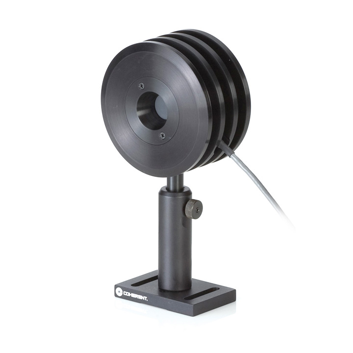 This PM30V1 laser power sensor is designed for use with high peak power, low repetition rate, Q-switched Nd:YAG lasers up to 30W. A volume absorbing substrate mounted in front of the detector absorbs to bulk of the laser energy, instead of hitting the detector element directly. The results in a much higher damage resistance, approaching 2 J/cm2, at relatively low repetition rates of approximately 10 pps.