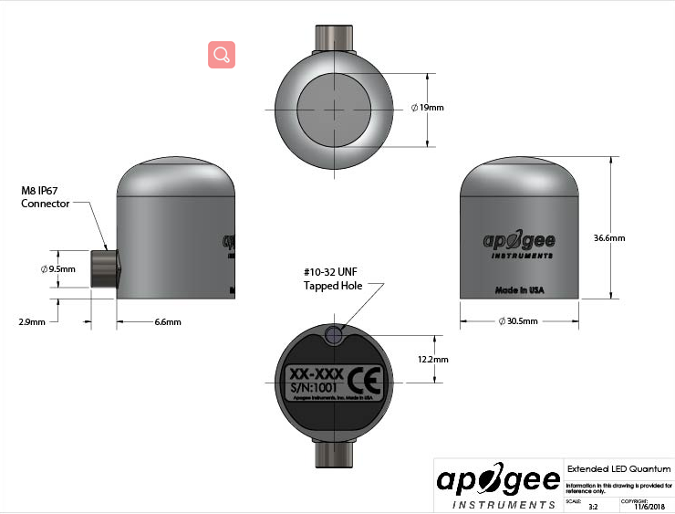 The analog version of this sensor (SQ-640) comes with the inline cable connector placed 30 cm from the sensor head for either standard use as a long-cable pigtail sensor, or for use with our microCache Bluetooth Micro Logger by unscrewing the connector, discarding the long section of cable and then screwing the sensor to the mating connector on the microCache.