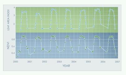 NDVI and PRI are calculated from measurements of of electromagnetic radiation reflected from canopy surfaces. They are correlated with canopy variables such as: