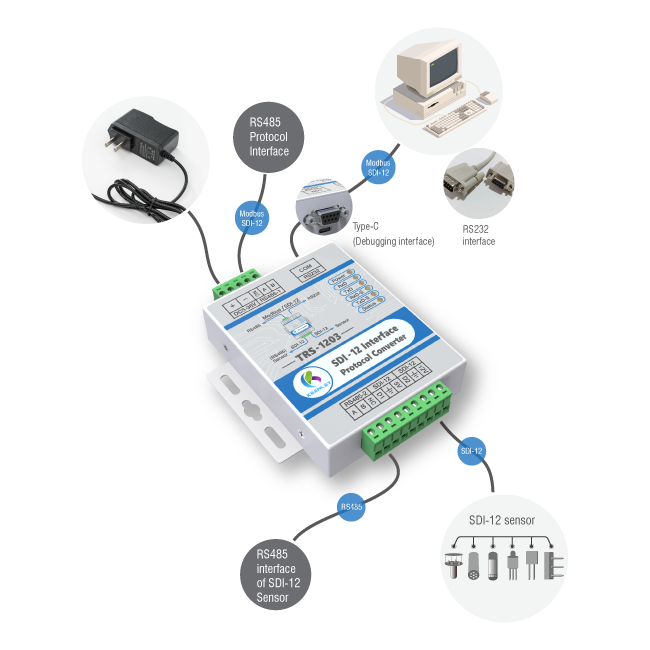 The SDI-12 Interface Protocol Converter, an advanced device widely used in fields such as agriculture, environmental monitoring, meteorological research, and hydrological measurement, etc., has features of high reliability, stable performance, and easy operation, which can effectively convert data between SDI-12 interface and other interfaces, providing users with a convenient and fast user experience.