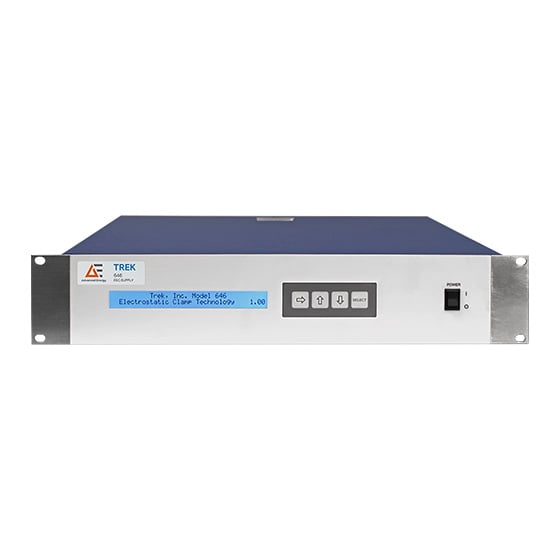 The Trek 646 software-driven electrostatic chuck supply offers an array of features that accommodate a variety of demanding applications. The instrument incorporates Advanced Energy technology which has demonstrated increased efficiency and throughput equal to three times that of other supplies. The versatile trusted performance of the Trek 646 allows for use in multiple unique tools and processes that eliminates the need to specify a new supply for each unique tool or process in a facility.