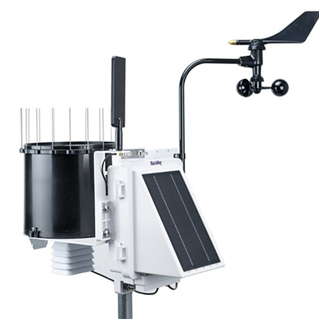 The fully integrated WatchDog 3540 Wireless Weather Station measures temperature, humidity, rainfall, and wind speed/direction. It records and communicates the data to the cloud using its internal modem or radio.