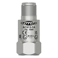 低電容,本質(zhì)安全IEC認證(IECEX/ANZEX/PESO/KC/EAC)加速度計,頂部出口2針連接器,100 MV/G,±10%
