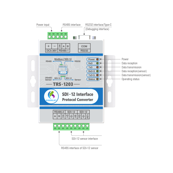 The SDI-12 Interface Protocol Converter is simple to operate. Data transmission and processing can be achieved only by connecting the sensor to the converter which is connected to a data acquisition system or a computer. Meanwhile, it supports data recording and storage functions, allowing users to query historical data at any time and perform data analysis and comparison. In addition, various output interface options are provided, including RS485, RS232, USB, etc., so that users can choose the interface according to their actual needs.